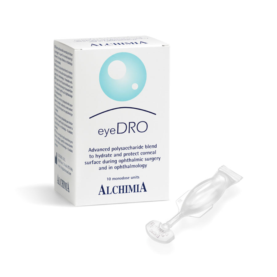 eyeDRO è una miscela avanzata di polisaccaridi per l’idratazione di lunga durata della superficie corneale e la protezione efficace dell’epitelio corneale durante gli interventi di chirurgia oftalmica e in oftalmologia. Una singola applicazione di eyeDRO durante la chirurgia della cataratta sostituisce tutte le applicazioni di BSS e fornisce chiarezza ottica e un ingrandimento fino al 15% delle strutture sottostanti. eyeDRO ha quindi potere ingrandente. eyeDRO si usa nella chirurgia vitreoretinica al posto della BSS. Una, o al massimo due applicazioni di eyeDRO, forniscono un supporto stabile alla lente per vitrectomia durante la chirurgia vitreoretinica. eyeDRO è facilmente rimosso mediante lavaggi con soluzioni saline.