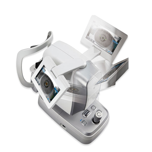 Autoref/ker Huvitz con funzioni aberrometria, pupillometria e keratometria periferica, full auto tracking, display lcd da 7″ a colori touch screen ed orientabile 360º, tecnologia wavefront, retroilluminazione per osservazione del cristallino, misura raggio base lac, test visus soggettivo, test sensibilita’ al contrasto ed abbagliamento, misura break up time Film lacrimale e filtro per valutazione ghiandole meibomio su palpebra superiore e inferiore. Visualizzazione segmento anteriore a colori.