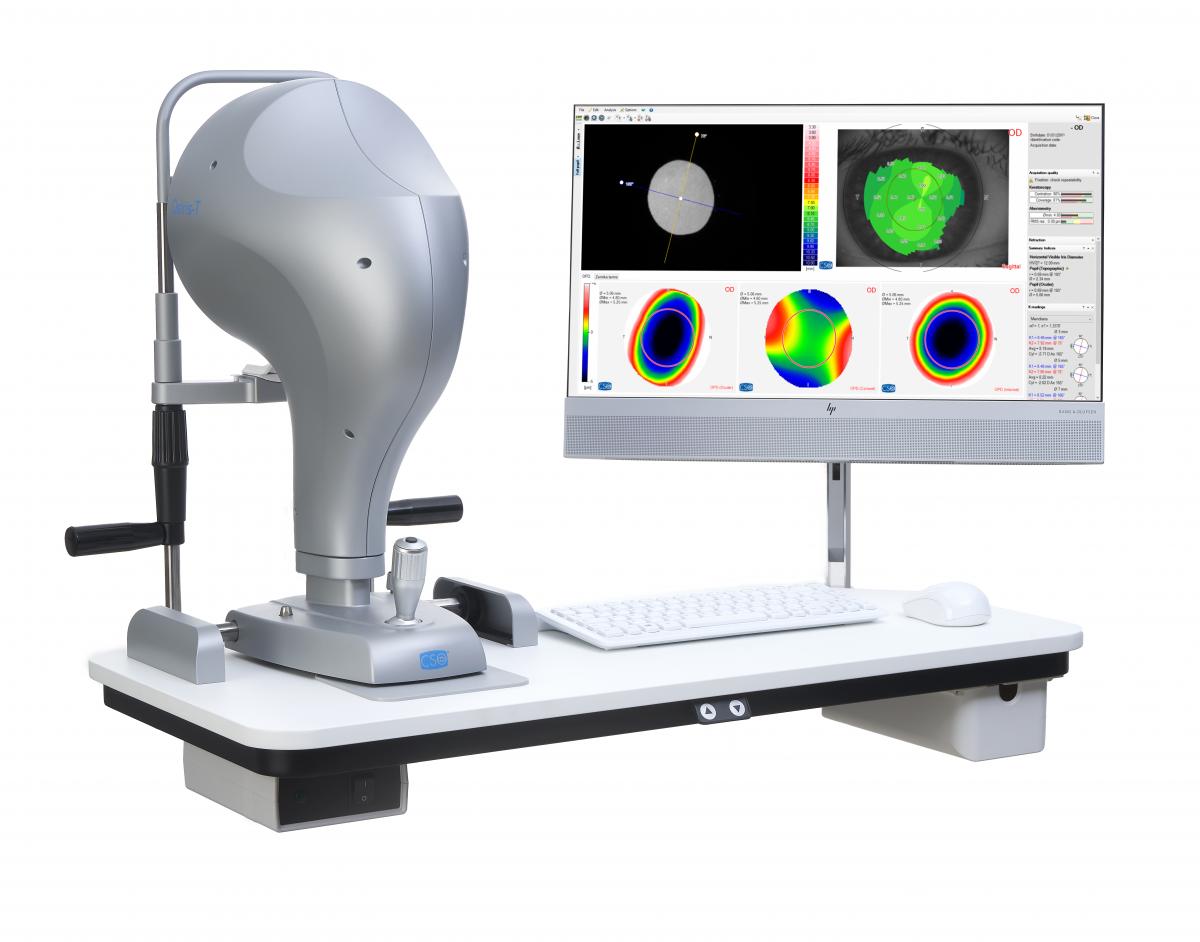 IL TOPOGRAFO: Utilizzando un sistema di topografia a riflessione basato sul disco di Placido a 22 anelli, il dispositivo è in grado di misurare la morfologia e la componente refrattiva corneale per mezzo delle consuete mappe di curvatura sagittale, di curvatura tangenziale, di elevazione e di potere. La disponibilità di consolidati parametri di sintesi rende il follow-up e la diagnostica del cheratocono semplici e intuitivi. L’integrazione di topografo e aberrometro permette di calcolare la componente interna del fronte d’onda.