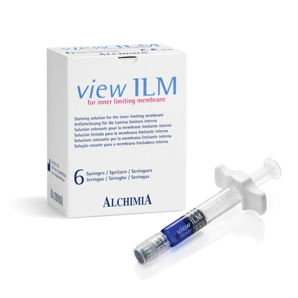 view ILM è Blulife (colorante brevettato con formula: C48H50N3NaO7S) allo 0,03% in soluzione fisiologica, confezionato in siringhe pre-riempite da 0,7 ml, per la colorazione reversibile della membrana limitante interna (MLI) da asportare nel corso della chirurgia vitreoretinica. Il prodotto garantisce una colorazione efficace e rapida del tessuto, senza rischi per il paziente. Contiene un agente addensante che migliora il contatto del colorante con il tessuto, permettendo una visualizzazione perfetta della membrana limitante interna. Inoltre, semplifica la chirurgia, rendendo superfluo lo scambio fluido/aria che si effettua prima dell’iniezione del colorante per non diluirlo.